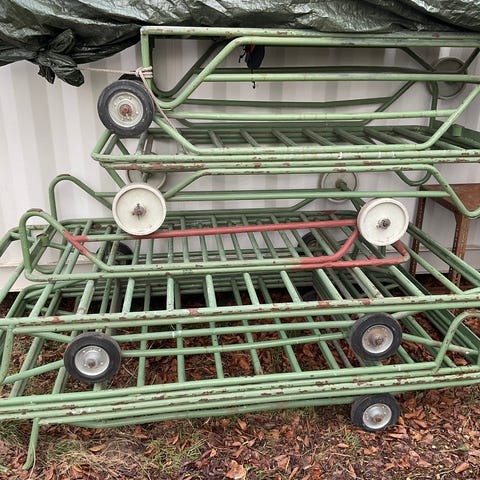 Sælger 3 stk maler vogne, de koster 1000 kr pr styk, der kan hænge 12 vinduer pr vogn, de kan skilles ad så man kan tage dem med ud i byen. De er yderst stabile.