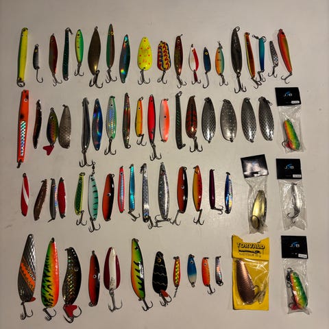 Div. Blink og pirke til havfiskeri i kraftig trækasse.