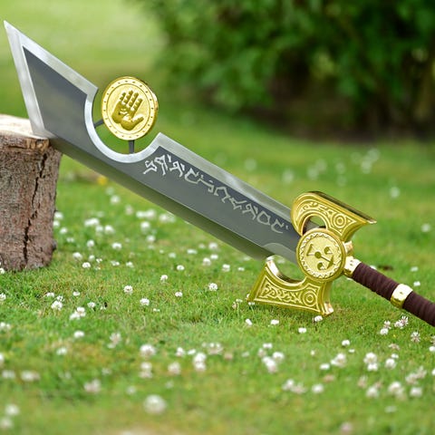 Sværdet er naturligvis lavet i stål og har en rigtig god tyngde uden at være upraktisk. Det er ikke en billig resin-replika, men en robust version der både kan udstilles og – hvis du føler dig ekstra Alliance-royal – bruges til cosplay eller rollespil.