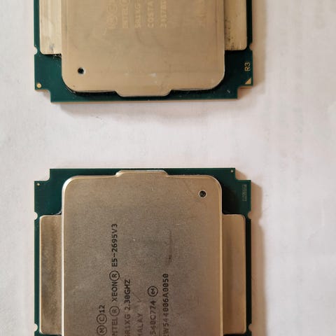 2stk Kraftig Xeon E5-2670 V3 med 12 kerner/24 tråde. Performer på niveau med i7-8700K.