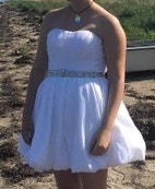 Konfirmationskjole, Lucca, str. 36, Sød og enkel kjole med snørre i ryggen, så den kan justeres i str. Der medfølger også tylskørt til mere puf.