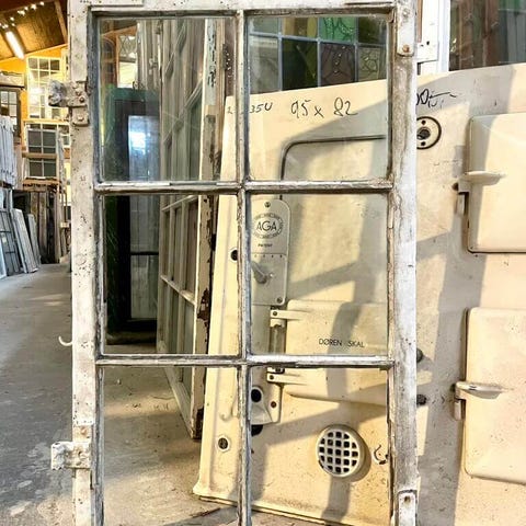 Klassisk 8-ruders vinduesramme m. gammelt glas, B:52, H:132