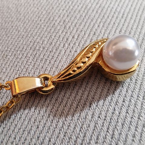 Sød halskæde med bamsevedhæng med perle. Vedhænget måler ca. 6 cm.