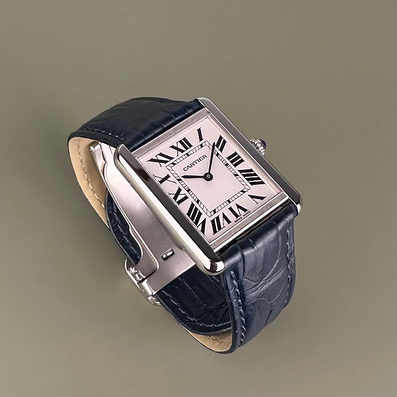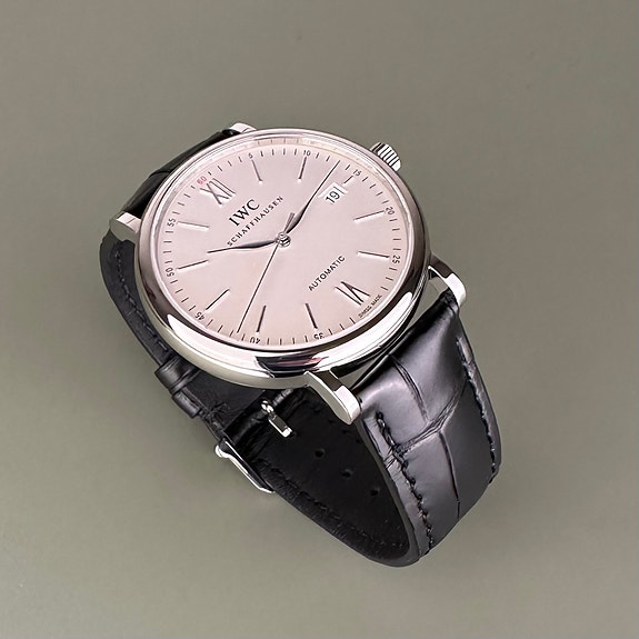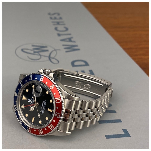 Uret er monteret på en ny sort alligator læderrem med et foldespænde. Uret kommer som et fuldt sæt med boks og originalt garantikort. Travelboksen er slidt.
