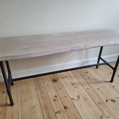 Kraftigt stel i metal. Træplade malet med sort glans maling.