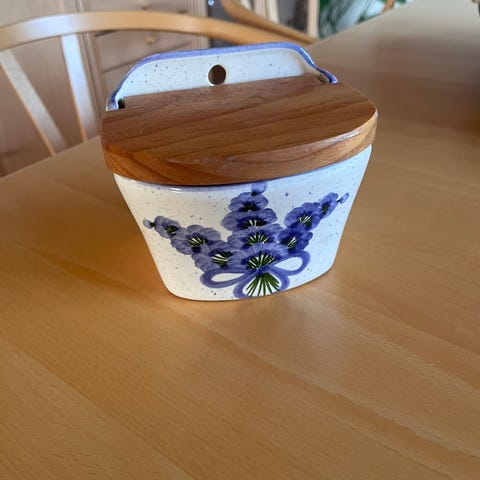 Svensk/samisk saltkar. Diameter 5 cm. Kan afhentes enten i Åbyhøj eller på Frederiksberg. Eventuel fragt på købers regning (35 kr.)