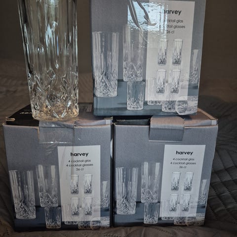 12 vinglas og 12 hedvinsglas. Der står Ancher Iversen Studio i bunden. 14,5 og 10,5 cm. høje. Samlet pris for dem alle.
