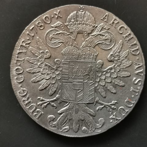 Oprindeligt var Maria Theresa Thaler: er en sølvbarremønt, der har været i brug i verdenshandlen siden 1741.