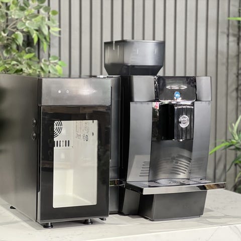 Automatisk cappuccinomaskine (valgfri), placeret ved siden af gruppen, til at lave en perfekt cappuccino på et par minutter med blot et tryk på en knap;