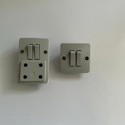 Sjælden LK/ NES stikkontakt med jord og gul afbryder. Vaske ægte retro stikkontakt.