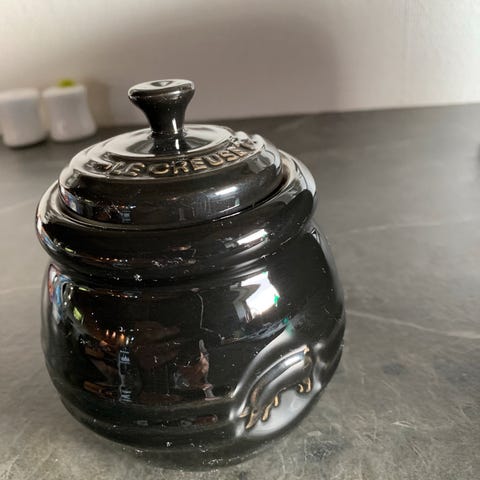 Le Creuset krukke til marinade.Sort. Med pensel.