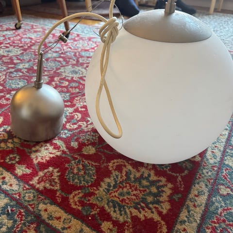 Pæn IKEA loftlampe nr. 10937 i glas og stål.