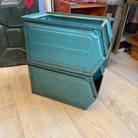 Metalkasser, grønne, Fine retro metal kasser som kan stables sælges. Prisen er pr. styk.