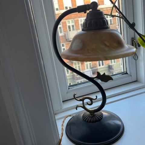 bordlampe a la art noveau art deco, alder ukendt, men sansynligvis en senere kopi end perioden. fin stand, lang ledning eftermonteret. kan sendes med gls til gældende pris.