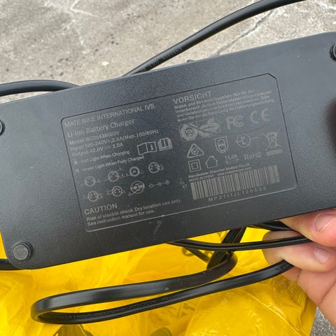 Original oplader til MATE X elcykel. 3 pins, 48V.