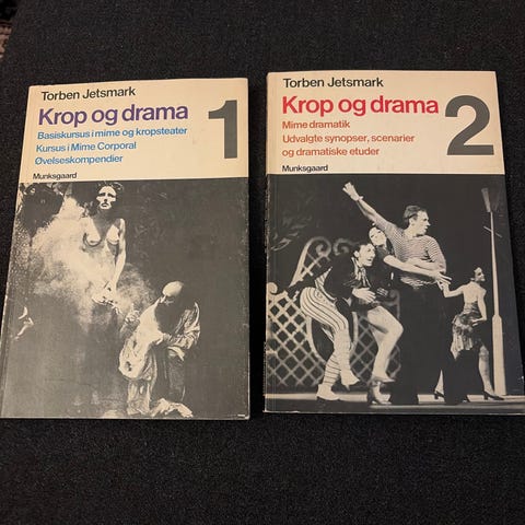 Krop og drama. , Torben Jetsmark , emne: kunst og kultur, Bogen er et basiskursus i mime og kropsteater fra 1983 på 135 sider og måler 16 x 23 cm. Den er hæftet med navn på titelbladet.