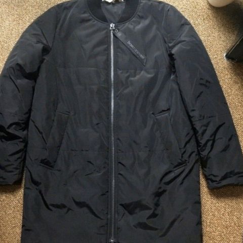 Frakke, str. 36, Kapp Ahl, Sort, Næsten som ny, Frakken er kun brugt 3-4 gange, den har hætte og vatteret for- dejlig varm -. Længde fra skulder 94 cm , ærmelængde 51. Giv et bud.