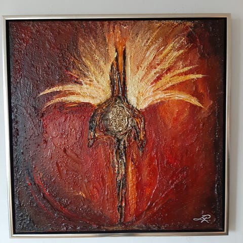 Maleri som jeg selv har lavet og leveres med luksus lærred samt luksus galleri ramme med mat sorte sider samt en smuk gylden sølv på front kanten.