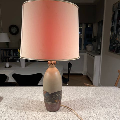 Anden bordlampe, Hjorth Keramik Bornholm, Gammel og fuldstændig intakt bordlampe med fuglemotiv (papegøje).