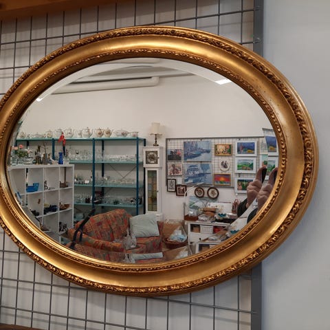 Rundt spejl i kvadratisk aluramme ( 36 x 36 cm )