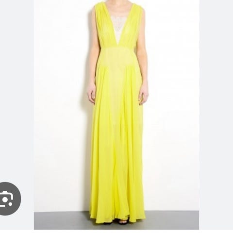 Flot velholdt løstsiddende gul kjole med lande ærmer i silke/vicose.