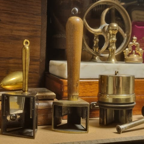Man kan se størrelsen på de forskellige prismer på billederne. På billederne kan man se de to første er blevet rengjort den sidste er med støv efter mange år på et loft.