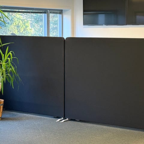 Sælger 4 stk. praktiske skærmvægge/bordskærme, der er ideelle til både kontor og hjemmearbejdsplads.