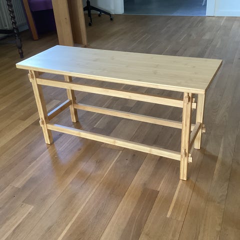 Sælger denne bambus/ bast bænk med støbejerns stel.