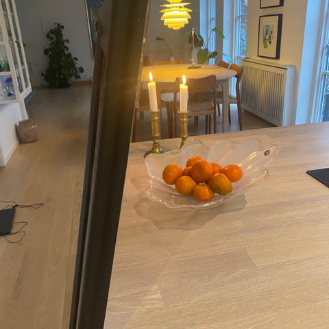 Selve spejlet er nogle steder blevet lidt uskarpt med alderen, så det er mest til pynt