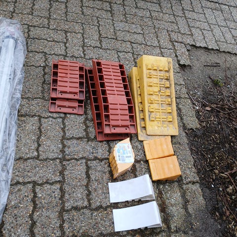 2 stk Stopklodser i metal til bil,trailer eller campingvogn, kan klappes sammen så de intet fylder , kan hentes i Risskov eller sendes sælges billigt