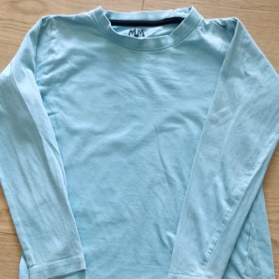 Langærmet T-shirt til dreng med blå og hvide striber 👕