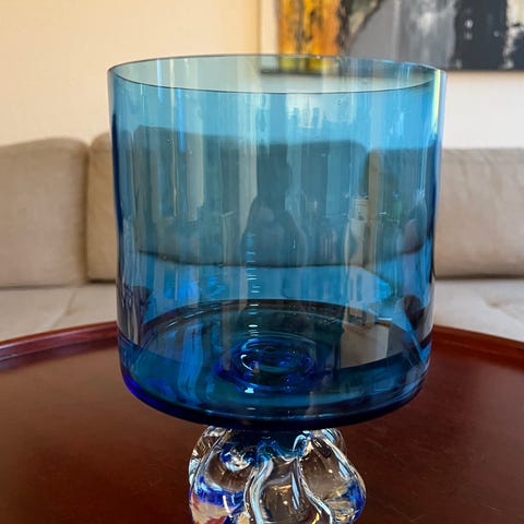 Stor smuk Åse Rise skål med sart blå glasur (nærmest celadon) og let krakelering.