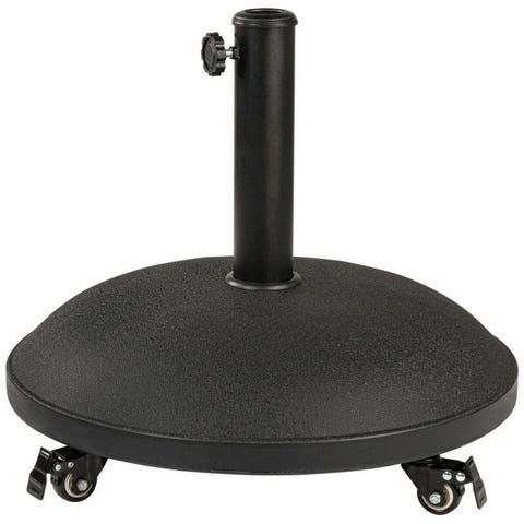 100 liter. Stabil firkantet parasolfod til hængeparasol. 4 hjul til nem flytning. Fyldes med vand eller sand. Størrelse: 84 x 84 x 17 cm. (Nypris 800).
