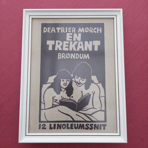 Litografi fra 1978 af Dea Trier Mørch fra mappen Kastaniealleen. God stand men gulnet, hjemmelavet passe partout og mørk træramme