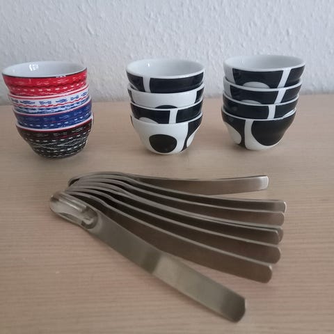 Se fotos, har også 4 æggebæger i pink begge sæt er yderst fin stand. Service