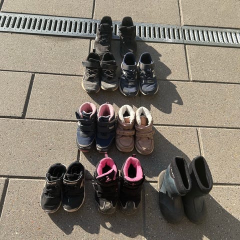 Blå sko størrelse 35 skal lige gøres rent før den bliver brugt.