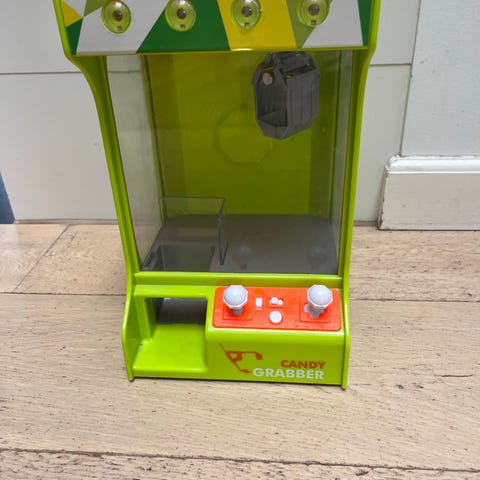 Andet legetøj, Slikmaskine, GadgetMonster, Candygrapper fra Gadgetmonster. Brugt ganske lidt. Medfølgende plasticmønter, som skal puttes i. Den spiller musik, når den er tændt.