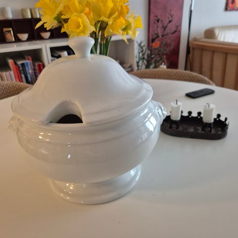 Flot hvidglasseret suppeterrine 3,5L.