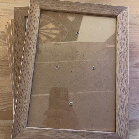 Ramme i eg og lærk. Med tappede hjørnesamlinger. 54x130,2x6cm. Kan bruges som sokkel til et skab, som indramning af spejl eller måske noget helt tredje.