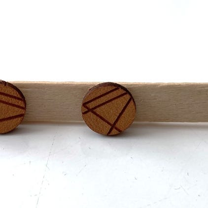 Store ovale resin ørestikker, med farverigt mønster, i turkis, rød, hvid og brune nuancer.