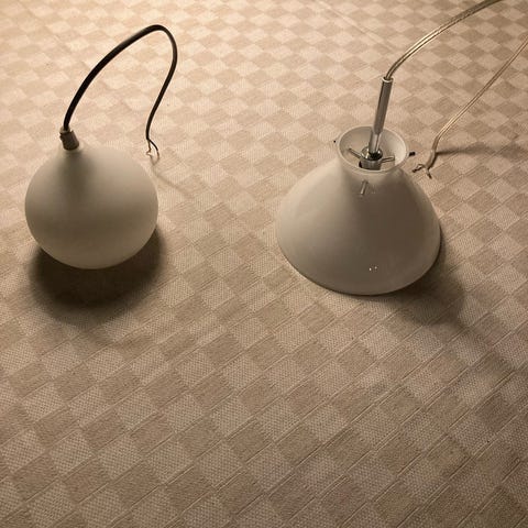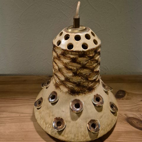 2 ældre Søholm pendler i fin stand. Skal have nye ledninger. Ingen skår eller afslag. Sælges helst samlet for 500kr eller 300kr pr. Stk. diameter ca 23 cm