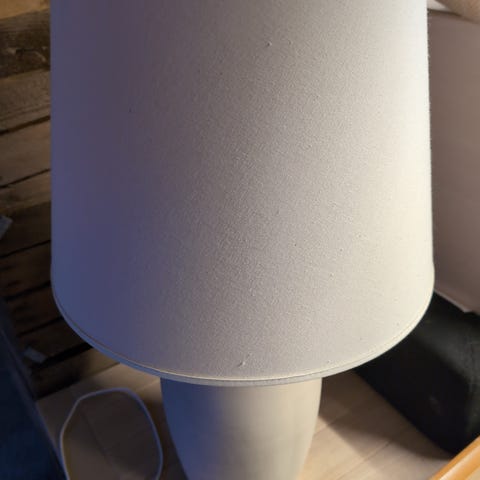 To fine sorte bordlamper med forholdsvis nye lampeskærme i hvid sælges grundet pladsmangel