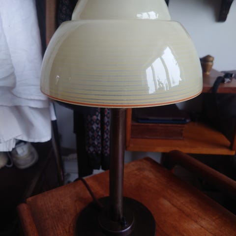 2 stk. klassiske vintage/retro bord/senge lamper fra OMI Type 190-13 (Olsen & Møller Industri A/S - dansk lampe producent i 1960’erne og 70’erne). 50cm høje - mørk brun lakering med flot "dybde". Ledning er skiftet på begge lamper, og i meget fin stand (patina) uden buler i skærmene.