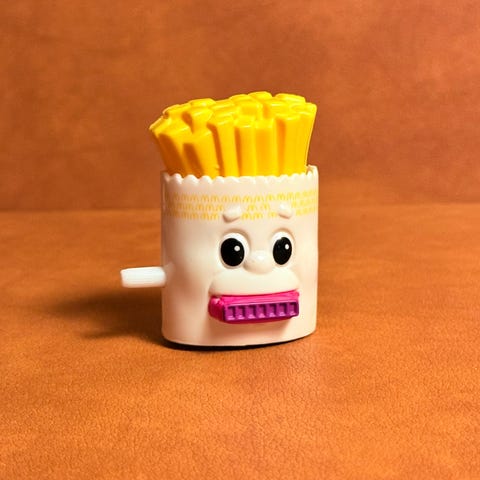 Vintage McDonald's Fry Kids Totempæl figur fra 1996. Kan åbnes og lukkes, når man drejer toppen. Har meget få brugspor, men er udover det I pæn stand.