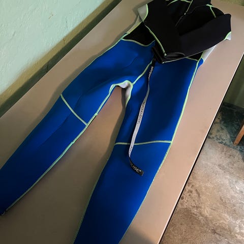 Våddragt som kun er brugt et par gange. Den er i super fin stand, har dog lidt snavs på ærmet (se billede), men det betyder intet for standen.