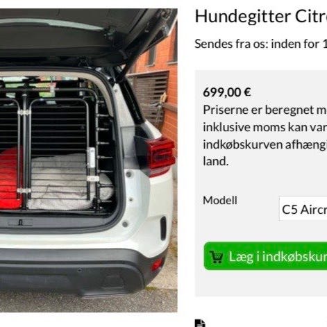 Hindegitter m rumdeler til en C5 Aircross årgang 2017-2022