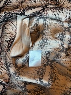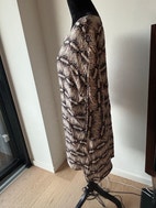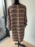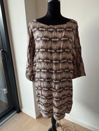 Lækkert blødt materiale i fint mønster i farverne sand, sort, lyserød. Str. 40