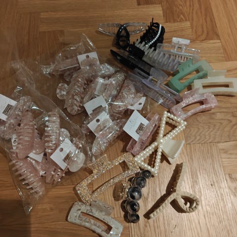 Forskellige ting til håret , hårbånd, hår klemmer et med sløjfe, hår elastik , hår kam. 10 stk som på billede. I pæn stand . Se evt mine andre annoncer