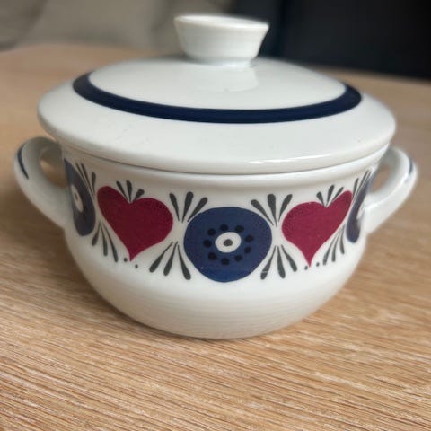 Rørstrand Palett skål med låg og hank. Fede retro farver...flot stand. Pris 200 kr.