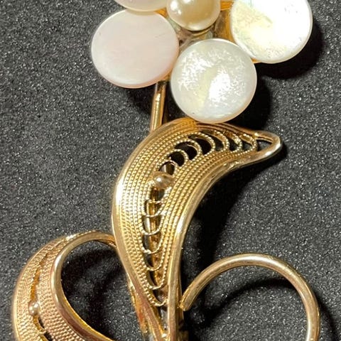Broche, forgyldt, Langt blad og andet kromilure kunst